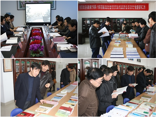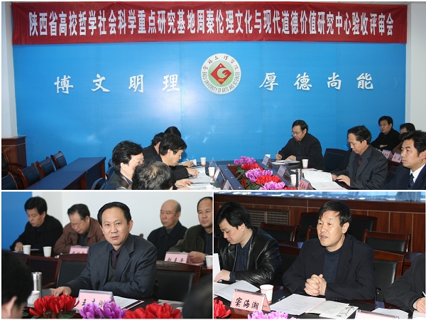 在听取汇报之后,省教育厅领导和评审专家对中心进行了现场考察和质疑讨论,对周秦伦理文化与现代道德价值研究中心的建设工作有了全面的了解和掌握,并给予了充分肯定和高度评价。他们还分别从基地以后的建设目标、发展领域、发展方向、队伍建设、带头人的培养等方面提出了指导性的意见和建议。