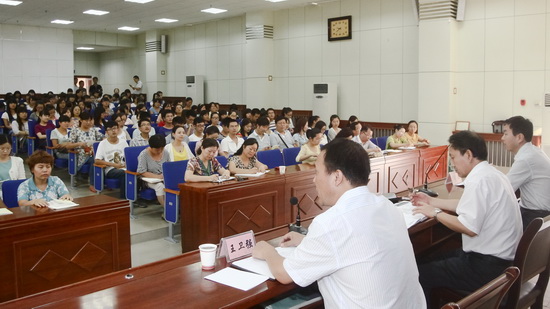 9月17日下午,外语系在新校区木铎厅召开了党的群众路线教育实践活动动员大会,对全系教育实践活动进行了动员部署。校党委书记、学校党的群众路线教育实践活动领导小组组长王志刚参加动员大会并作了重要讲话。党委办公室主任王永君、外语系领导班子成员、科级以上干部、各党支部书记、各教研室主任、教工党员、学生党员和师生代表200余人参加了会议。会议由外语系主任王卫强主持,党总支书记冯森作动员讲话。