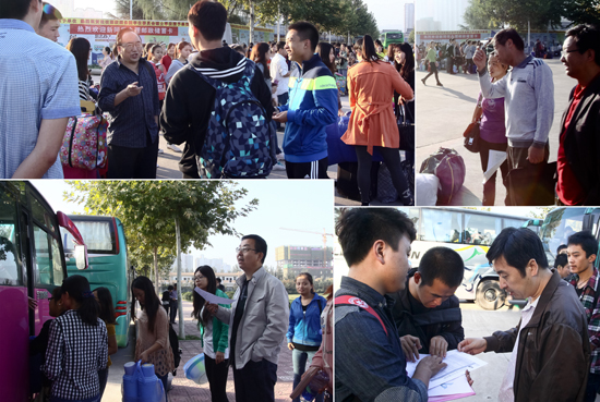 10月8日,我校13个院、系的1545名2010级师范类学生及哲学专业学生奔赴实习学校,开始为期6周的教育实习活动。教务处及相关院、系领导检查了出发前的各项准备工作。