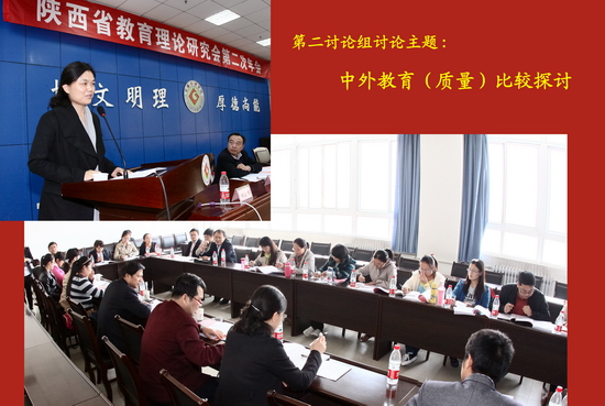 10月27日下午,与会人员分三组讨论,第一组主持人为陕西省教育理论研究会常务理事、陕西师范大学高等教育评估中心主任、博士生导师陈鹏教授和陕西省教育理论研究会常务理事、我校教务处长王富平教授,讨论主题是“教育质量问题”;第二组主持人为陕西省教育理论研究会常务理事、西安文理学院经济与社会发展研究中心主任肖世民教授和陕西省教育理论研究会常务理事、渭南师范学院教育科学学院院长梁艳玲教授,讨论主题是“中外教育比较研究”;第三组主持人为陕西省教育理论研究会常务理事、西安邮电大学纪委书记孙冰红教授和咸阳师范学院教育科学学院副院长马莹博士,讨论主题是“教育教学研究”。
