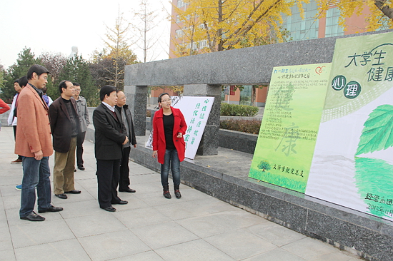 11月14日,学工部、大学生心理健康教育与咨询中心分别在新校区四为园、老校区小广场举办“2013级新生心理健康主题教育活动”——主题宣传、心理、生理卫生公益咨询、“新生适应性”团体训练活动。校党委副书记米晓东检查指导本次活动。