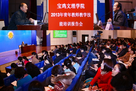 11月22日,学校在新校区举行了青年教师教学技能培训报告会暨示范教学活动。赵克平、袁都奇教授受邀作了培训报告,经济管理系刘晓科、数学系黄梅娟讲师为青年教师作了示范教学。全校17个院系(部)的近400名青年教师参加了培训活动。