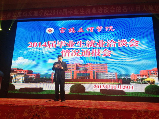 11月29日晚,我校举行2014届毕业生就业洽谈会情况通报会,校长白黎致欢迎辞,省教育厅高校学生工作处处长叶军讲话,校党委副书记米晓东主持情况通报会,校毕业生就业指导服务中心主任李周让通报了2014届毕业生基本情况和洽谈会准备情况。我校党委书记王志刚,党委副书记李全武,副校长傅志军、杨子元,省教育厅学生处副处长韩公营、宝鸡市教育局党组书记肖炳良,宝鸡市人社局副局长、公务员局局长郑雅峰以及陕西理工学院、渭南师范学院、西安文理学院主管就业工作的部门领导出席了情况通报会。