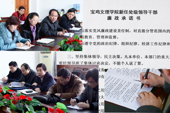 会上,新任处级干部与校纪委签订了廉政承诺书。权雅宁、茹宗志、刘景世、郭宏科、康江峰、李云等同志分别发言。他们一致认为这次廉政谈话非常及时,非常重要。表示要牢记和践行纪委提出“五点廉政要求”,自觉接受党组织和广大师生员工的监督,踏踏实实做事,清清白白做人,做到勤政廉政,决不辜负学校党委、纪委的信任和期望,尽职尽责,为学校各项事业的发展贡献自己的力量。