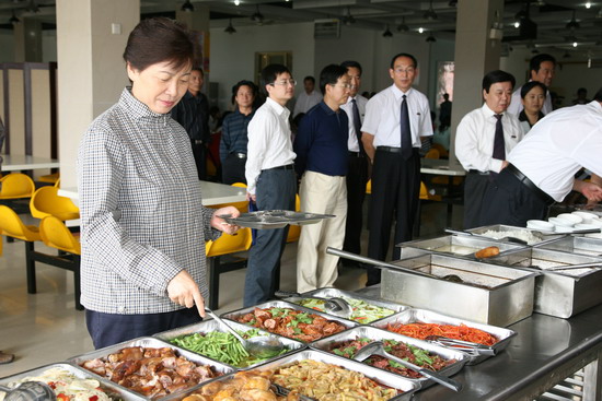 王侠书记一行深入学生食堂,了解学生伙食情况