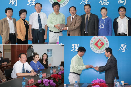 捐赠仪式由李全武副书记主持,王志刚院长代表学院向西安印刷科技学院在我院举办校庆50周年庆典活动之际,慷慨解囊为我院捐赠10万元表示衷心的感谢,对甄董事长一行的到来表示热烈的欢迎,并简要介绍了我院建校50年的发展历程,希望借此机会探讨两校之间合作、交流的可能性,祝愿两校在今后的建设发展过程中相互协作,共同取得辉煌成就。西安印刷科技学院董事长甄文龙对我院建校50周年表示祝贺,学院董事会对此事也非常重视,尽最大努力为我院校庆捐赠10万元,希望藉此建立起两校之间友好的合作关系。随后甄董事长介绍了西安印刷科技学院的概况:西安印刷科技学院是全国继北京印刷学院之后的第二个印刷类的专业院校,以印刷、包装和出版专业为主,现有2600多名在校生。甄董事长对我院良好的校园文化和学习风气大加赞赏,希望两校今后在教学、管理和科研等方面进行交流,共同提高。