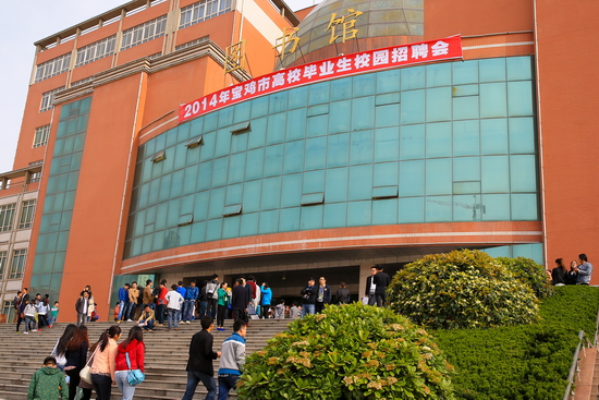 为了积极应对严峻的就业形势,进一步拓宽就业渠道,促进2014届毕业生充分就业,4月26日,我校与宝鸡市人才交流服务中心在新校区图书馆联合举办“2014年宝鸡市高校毕业生校园招聘会”。