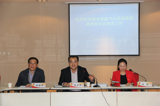 米晓东对徐永胜副书记莅临我校调研共青团工作表示热烈欢迎,对团省委长期以来对我校共青团工作的关心支持表示感谢,他指出,徐永胜副书记来我校调研指导工作,体现了团省委对我们的关心和关注,对我校共青团组织进一步开展好工作具有重要意义。米晓东还介绍了我校发展历史、基本情况、人才培养、学科建设和共青团工作开展情况。