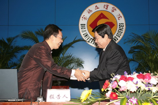 报告会上,肖群忠教授结合实际生活和自身经验深刻阐述了仁的含义与现代意义、义德的语意、道德内含和现代意义以及何为仁义之内外三个方面的内容。肖群忠教授深入浅出的讲演和幽默风趣的谈吐赢得了在场师生阵阵热烈的掌声。肖群忠教授还将他的两部著作《孝与中国文化》和《中国道德智慧十五讲》赠给了母校。