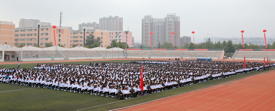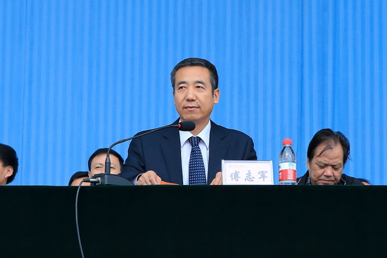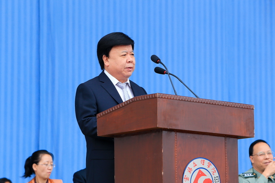 9月19日上午,我校2014级本科新生开学典礼暨军训动员大会在新校区体育场隆重举行。校党委书记王志刚,校长白黎,党委副书记米晓东、李全武,副校长傅志军、赵荣侠、杨子元以及中国人民解放军96401部队高爱斌中校、宁冬雷少校、张新民少校等出席大会并在主席台就坐。在主席台就坐的还有各院、系(部)党总支书记、院长、主任及各职能部门主要负责人。2014级全体本科新生及承担我校新生军训任务的96401部队军训团全体官兵参加了大会。王志刚为军训团授旗,白黎作重要讲话。傅志军主持大会。