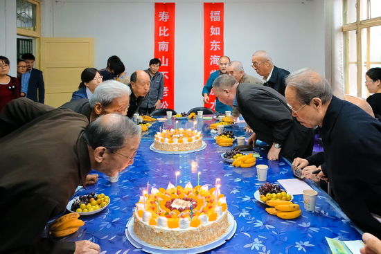 离退处党总支书记孙宏健宣读了寿星名单。校长办公室主任任红亮、组织部部长郑存库、校工会副主席张鹏、人事处处长宋崇碧等4名同志代表职能部门分别作了发言,表达了对老寿星的敬仰之情,向老寿星送上了美好的祝福。(离退休工作处供稿)