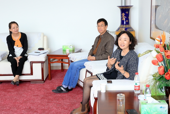 王虹对母校近年来取得的成绩感到振奋,她深情地回顾了20多年前在母校度过的令人难忘的美好时光。她说,毕业后无论在哪个岗位都非常关心和关注母校建设和发展,这是一种难以忘怀的母校情结。她向母校领导和老师汇报了自己20多年来的工作经历,并结合工作实际,从专业实践的角度发表了自己对人才培养的认识。她就建立实习基地与校领导和与会老师交流了意见,并表示愿意与学校进行合作,也愿意通过努力为学校建设和发展贡献绵薄之力。同时,希望学校能推荐优秀人才支持画报社的发展。