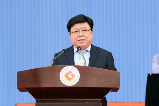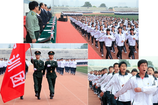 王志刚在武装部长樊林森的陪同下,检阅了全体受训学生。随着雄壮的解放军进行曲响起,各院系列队经过主席台,同学们精神饱满、步伐整齐、口号响亮,激起阵阵掌声。