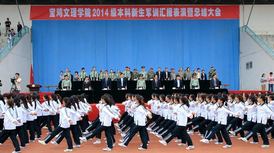 我校隆重举行2014级新生军训汇报表演暨总结大会