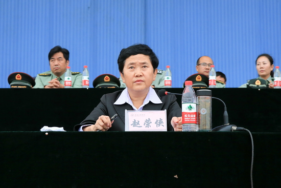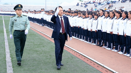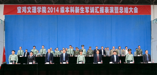 9月26日下午,我校举行2014级新生军训汇报表演暨总结大会。校党委书记王志刚、校长白黎,96401部队政治部副主任甘业元大校,校党委副书记米晓东、李全武、副校长赵荣侠、杨子元出席大会并在主席台就座。各院系党政主要领导、各职能部门主要负责人以及2014级参加军训的4792名新生参加了大会。赵荣侠主持大会。