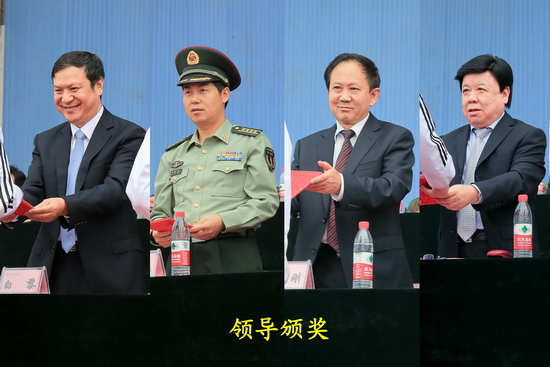 汇报表演结束后,白黎向96401部队赠送了锦旗。学工部部长李周让宣读了军训领导小组对军训工作先进单位和军训标兵的表彰决定。校领导和部队首长为受表彰的单位和个人颁发了奖牌和证书。