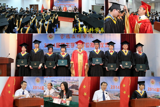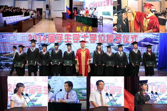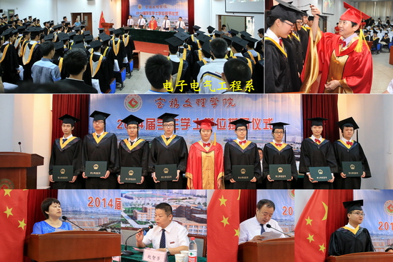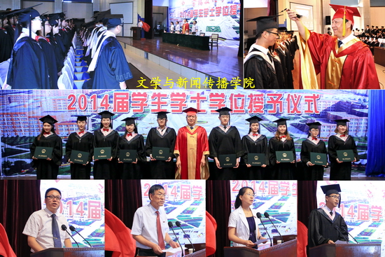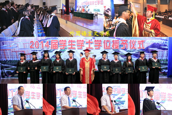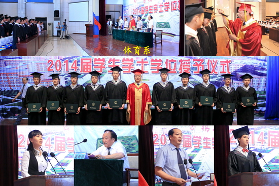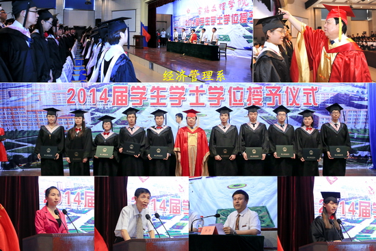 6月16日至6月20日,我校以院系为单位隆重举行2014届毕业生学士学位授予仪式。校党委书记王志刚,校长白黎,校党委副书记米晓东、李全武,副校长傅志军、赵荣侠、杨子元等出席学位授予仪式。各院系党总支书记主持了学士学位授予仪式。
