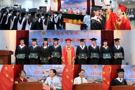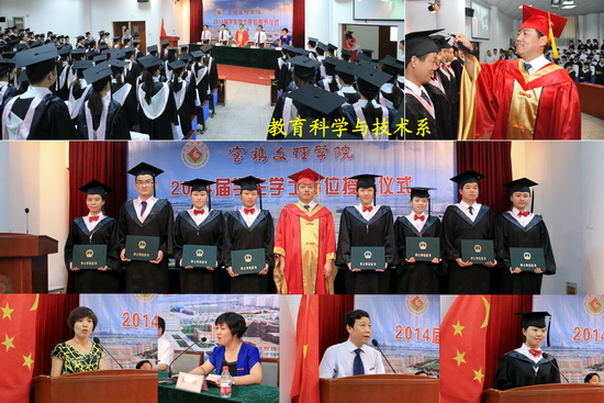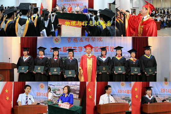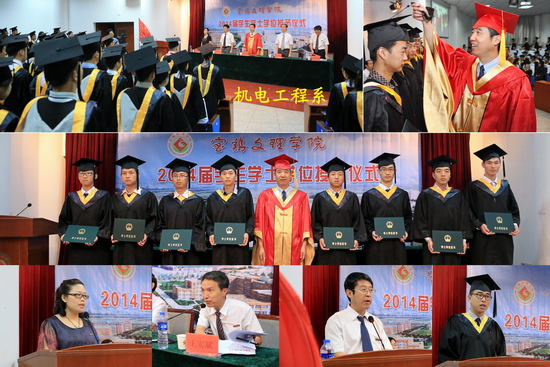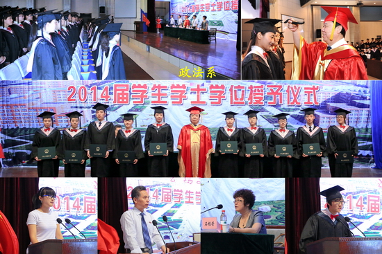 教务处处长王富平,学生处处长李周让,招生办公室主任、教务处副处长栾宏,高教研究室副主任、教务处副处长李景宜,学生处副处长郝晓炜、党建波,各院系党政领导、教师代表、2014届获学士学位毕业生及在校生代表参加了学士学位授予仪式。(教务处供稿)