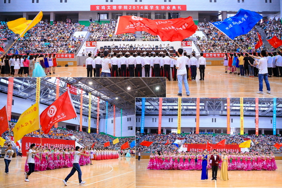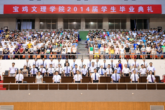 6月25日上午,我校在宝鸡市体育馆隆重举行2014届学生毕业典礼。校党委书记王志刚,校长白黎,党委副书记米晓东,副校长傅志军、赵荣侠、杨子元等出席毕业典礼。毕业典礼由米晓东主持。
