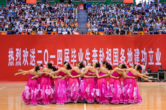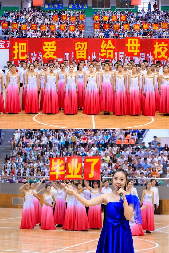 毕业典礼结束后,学校大学生艺术团表演了精彩的文艺节目。