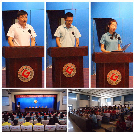 仪式上,与会领导为校级实践小分队授旗,校团委组织部部长宣读了校级实践小分队人员名单,校团委文体部部长带领全体社会实践队员承诺宣誓。电子电气工程系团总支书记、历史文化与旅游系学生分别代表带队教师和社会实践队员作了发言。