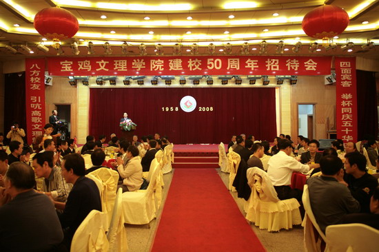 院长王志刚在招待会上致欢迎辞。他说,值宝鸡文理学院建校50周年之际,我谨代表宝鸡文理学院党政领导和全体师生员工向长期以来关心并支持学院发展的各位领导、校友、兄弟院校和各位嘉宾表示热烈的欢迎和衷心的感谢。50年既是一个里程碑,又是一个新起点。回首过去,我们感慨万千;相聚今朝,我们倍加珍惜;展望未来,我们无限憧憬。相信在各位领导和校友的鼎力支持下,在全院师生员工的共同努力下,宝鸡文理学院的明天一定会更加美好。