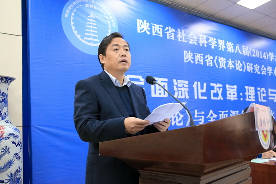 邓海潮代表陕西省《资本论》研究会致开幕辞。会上,举行了陕西省《资本论》研究会2014年学术年会“《资本论》与全面深化经济体制改革”理论征文颁奖仪式,陕西省《资本论》研究会副会长、兼秘书长孔祥利教授介绍了征文评奖过程、论文集出版情况,陕西省《资本论》研究会常务理事雷卫民教授宣读了获奖名单。