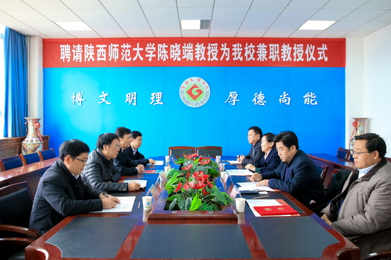 11月25日上午,我校在新校区图书馆第一会议室举行聘任仪式,陕西师范大学陈晓端教授受聘为为我校兼职教授。副校长赵荣侠出席会议并讲话,学科建设与研究生教育管理处处长吴毅主持会议。