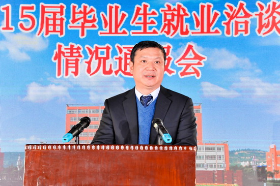 白黎代表学校党委、行政和全校师生向来自全国各地用人单位领导和朋友们表示热烈地欢迎,并向与会人员介绍了学校的发展变化及办学取得的成绩。他指出,2015年,我校共有毕业生5478人,来自全国31个省、市、自治区。他们生源质量高,整体基础好,在校期间,接受了良好的高等教育,经过浓厚大学文化氛围的熏陶;他们品德优良,具有强烈的社会责任感;基础扎实,具有完善合理的知识结构;学风优良,具有较强的创新精神和实践能力;综合素质较高,具有较强的社会适应能力。他们已经做好充分准备,期待着各用人单位的挑选。