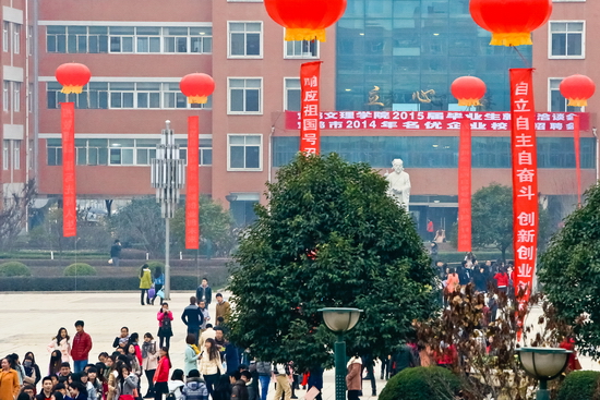 12月6日,我校2015届毕业生就业洽谈会在新校区隆重举行。本次洽谈会是在当前全社会宏观就业压力增大,高校毕业生总量持续增加,就业形势依然严峻的情况下召开的。目的是进一步加强学校与用人单位的联系,搭建用人单位与毕业生进行双向选择的平台,促进2015届毕业生充分顺利地就业。