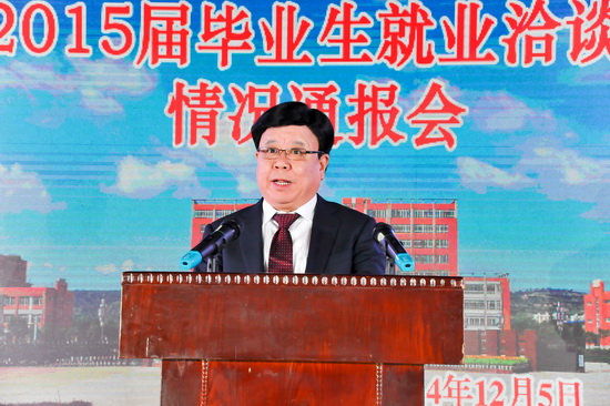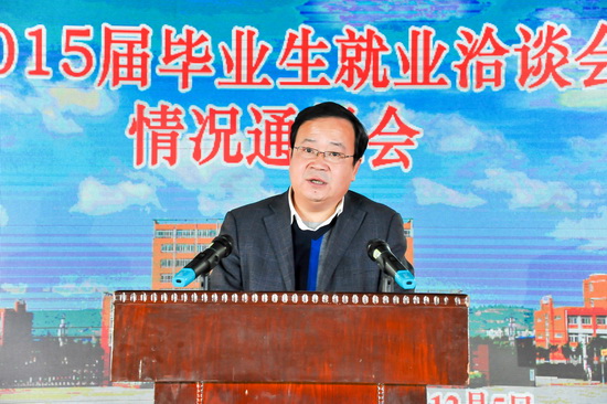 12月5日晚,我校举行2015届毕业生就业洽谈会情况通报会,校长白黎致欢迎辞,省教育厅高校学生工作处处长张和平讲话,校党委副书记米晓东主持情况通报会,校毕业生就业指导服务中心主任李周让通报了2015届毕业生基本情况和洽谈会准备情况。校党委书记王志刚,党委副书记李全武,副校长傅志军、杨子元,省教育厅学生处副处长唐澍、宝鸡市人力资源和社会保障局局长陈留根、宝鸡市教育局副局长杨存科等领导出席了情况通报会。