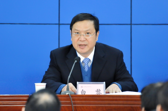 校长白黎致开幕词。他指出,召开大学生思想政治教育工作会议是我校政治生活中的一件大事,是全面总结贯彻落实中央16号文件10年来取得的工作成绩和经验,分析当前面临的形势、任务和挑战,构建和完善大学生思想政治教育工作长效机制,科学谋划下一步工作而召开的一次重要会议。他要求把提高人才培养质量作为学校改革发展最核心、最紧迫的任务,把大学生思想政治教育工作始终贯穿于学校人才培养的各个环节之中,积极探索大学生思想政治教育的新思路、新途径和新措施,力求取得实质性进展。他希望参会人员紧密围绕会议主题,站在为培养合格建设者和可靠接班人,提升人才质量,推进学校科学发展的高度,广泛交流工作经验,深入探讨共性问题,使会议开得生动活泼,富有成效。