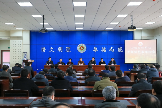 1月16日下午,我校在新校区甘棠厅召开领导班子主要成员任职宣布大会。省委组织部副部长、省委党建办基层办主任田晓东同志,省委高教工委副书记、省高教纪工委书记郝利生同志,省委组织部宣教干部处处长陈乃霞同志、省委高教工委组织部副部长许文学同志出席会议,会议由郝利生同志主持。