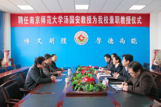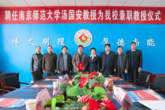 3月27日上午,我校在新校区图书馆第一会议室举行聘任仪式,南京师范大学汤国安教授受聘为我校兼职教授,副校长赵荣侠出席聘任仪式并向汤国安教授颁发了聘书。学科建设与研究生教育管理处处长吴毅主持聘任仪式。