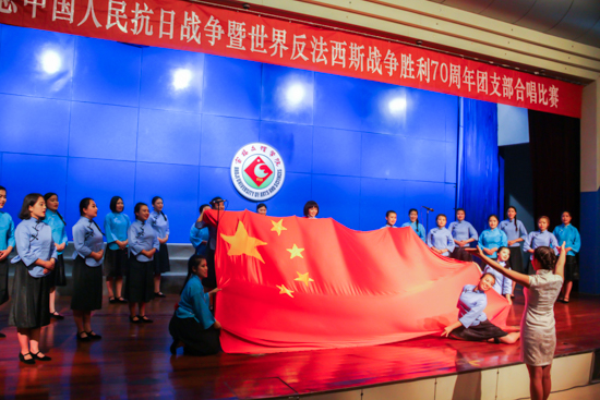 本次纪念中国人民抗日战争胜利暨世界反法西斯战争胜利70周年团支部合唱比赛是我校第二十五届“校园之春”大学生文化艺术节中重要的校级活动之一。本届校园文化艺术节努力营造出“主题突出、特色鲜明、情调高雅”的校园文化氛围,引导我校广大青年为实现国家富强、民族复兴、人民幸福的伟大“中国梦”而发奋学习、不懈奋斗。