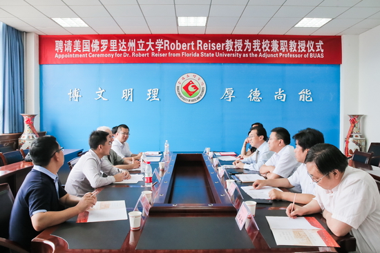 6月15日上午,我校在新校区第一会议室举行聘任仪式,美国佛罗里达州立大学Robert Reiser教授受聘为我校兼职教授,校长司晓宏出席聘任仪式并颁发了聘书。学科建设与研究生教育管理处处长吴毅主持聘任仪式。