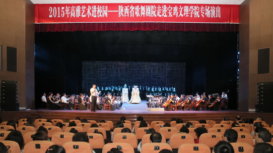 为丰富校园文化生活,提高大学生艺术修养和审美情趣,我校举办“高雅艺术进校园”活动,陕西省歌舞剧院的艺术家应邀于6月26日下午和晚上进行了专场演出活动。校党委书记白黎、党委副书记米晓东出席活动。