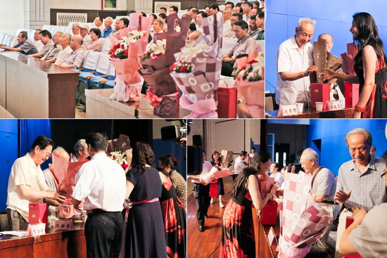 联谊会上,我校举行了“81级校友向母校捐赠文化石”仪式,李全武代表学校接收了81级校友、宝鸡凌云教育中心主任贾耀岗代表全体校友向母校捐赠的文化石照片。81级校友还向当年任课老师宋立人、任朝弟、汤兆玺、王仲宇、胡亮臣赠送鲜花和礼品。