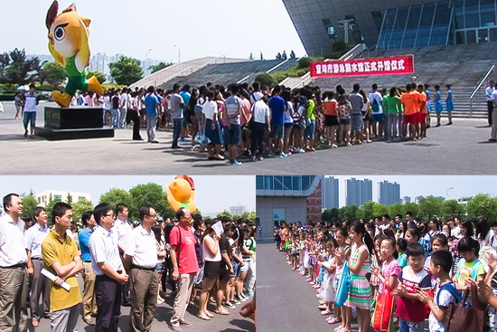 市政府副秘书长、体育局局长李富生,市教育局局长苏永兴,市高新区管委会调研员王战峰以及我校部分师生、宝鸡市游泳学校师生参加了开馆仪式。