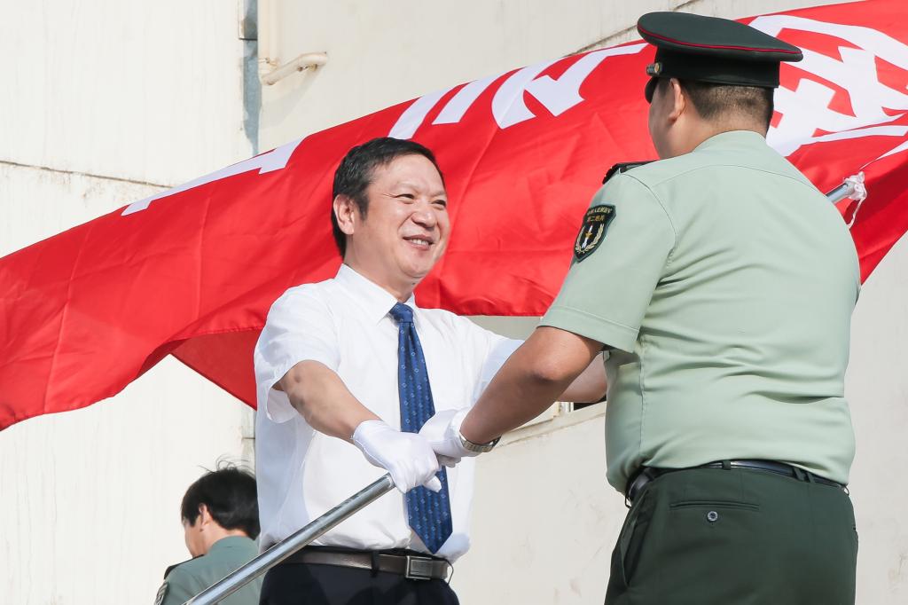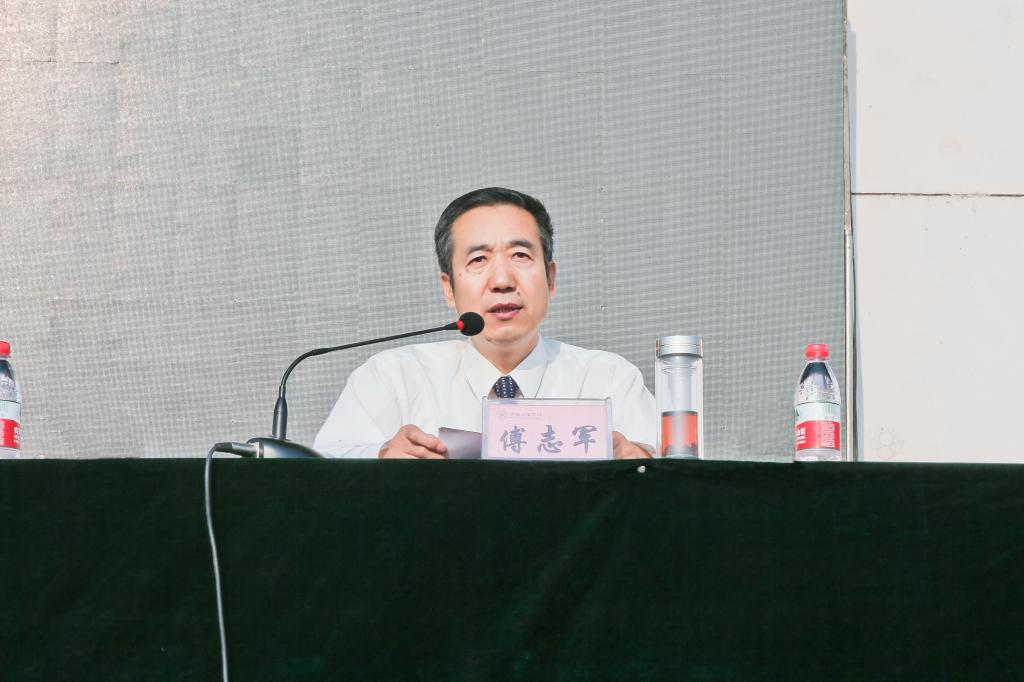 9月14日上午,我校2015级本科新生开学典礼暨军训动员大会在新校区体育场隆重举行。校党政领导白黎、司晓宏、米晓东、李全武、傅志军、赵荣侠,中国人民解放军96401部队王小兵中校等出席大会并在主席台就坐。校党委书记白黎为军训团授旗,校长司晓宏作重要讲话。副校长傅志军主持大会。