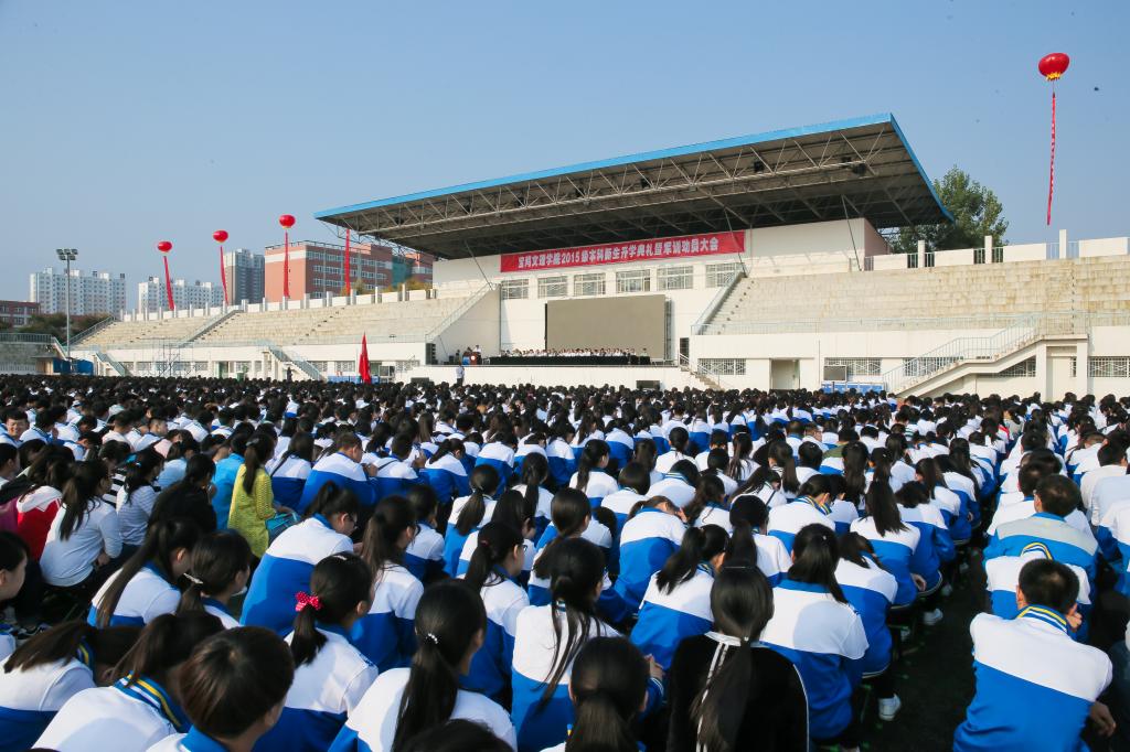 各院、系党总支书记、院长、主任及各职能部门主要负责人,2015级全体本科新生及承担我校新生军训任务的96401部队军训团全体官兵参加了大会。