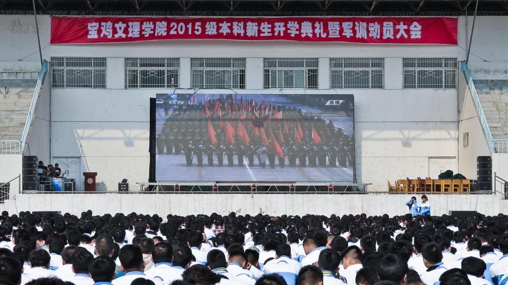 会后,2015级全体本科新生观看了纪念中国人民抗日战争暨世界反法西斯战争胜利70周年大会实况。(教务处 文/丁煜成 图/张平)