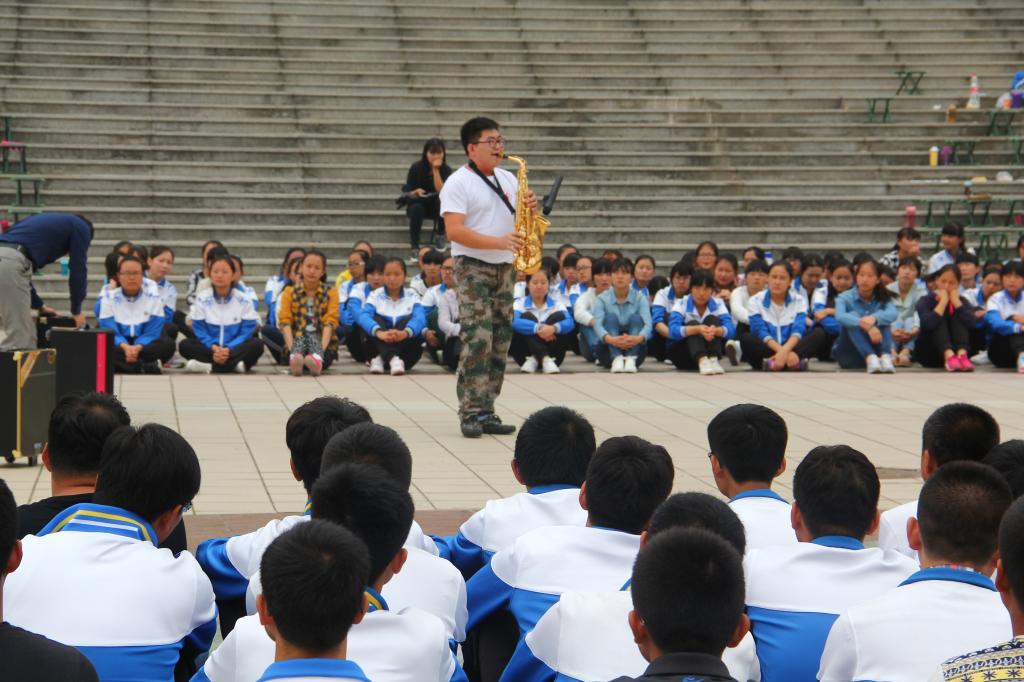演出小分队带来的歌曲《映山红》、萨克斯演奏《太阳最红毛主席最亲》表达了新时期青年人对革命先辈们的无限深情;歌曲《天路》《打靶归来》、《当那一天来临》、《团结就是力量》唱出了青年大学生的热情和力量,特别是演员们与军训教官一起演唱的《强军战歌》不仅展现了当代军人钢铁般的意志,更为全体军训新生鼓舞了士气。