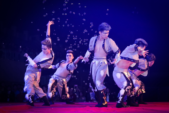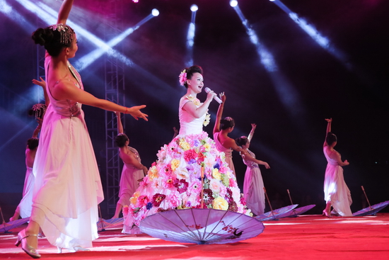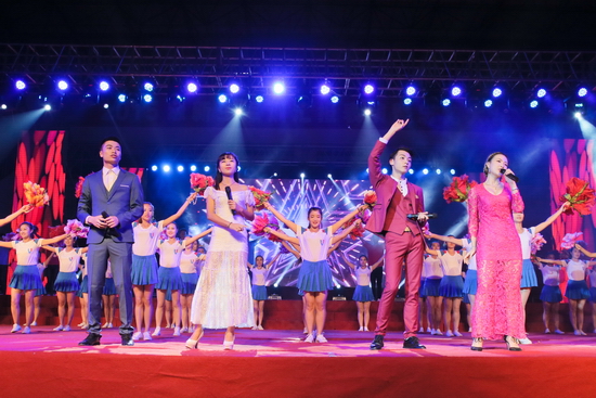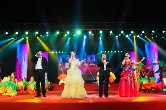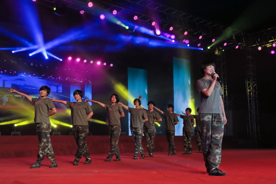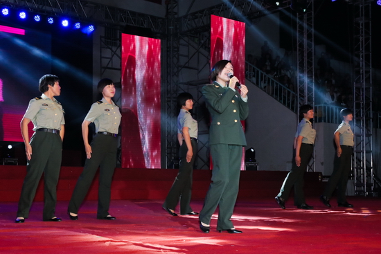 晚会在激情昂扬的《梦想点亮未来》中拉开帷幕,充满青春活力的街舞《动感节拍》、歌曲联唱《我们的青春我们的歌》和舞蹈《狼图腾》彰显了新时期大学生的青春风采和对未来美好生活的向往;由研究生演出的音乐诗朗诵《写给未来的你》,表达了文理学子坚持远大理想、奋发努力学习、立志报效祖国的坚定决心;歌伴舞《报答》旋律优美,真挚感人,唱出了新生对父母及军训教官的感恩与祝福;歌伴舞《望月》唱出了对子弟兵的无限深情,舞蹈《盛世中华》旋律高亢振奋,让现场的每位观众深深的感受到了新时期青年大学生对祖国无限的热爱和为实现伟大“中国梦”的坚定信心和决心。今年是中华民族抗日战争胜利暨世界反法西斯战争胜利70周年,晚会特别编排了一组革命歌曲联唱,《弹起我心爱的土琵琶》、《游击队员之歌》、《毛主席的话儿记心上》、《保卫黄河》、《东方红》表达了文理学子对那段烽火岁月的缅怀和对革命先辈的无限崇敬,表达了对祖国母亲的深情祝福,音诗画《归来》跨越时空,与革命烈士赵一曼的对话,表达了文理学子决心继承和发扬革命烈士的遗志,奋发努力学习,用实际行动为民族和国家的繁荣昌盛贡献青春力量。英姿飒爽的女教官们也表演了精彩的节目,歌伴舞《女兵走在大街上》和《彩云追月》引发了全场观众热烈的欢呼和掌声。在《中华大家园》的优美旋律中,校领导走上舞台,与演职人员一一握手,祝贺演出成功并合影留念。