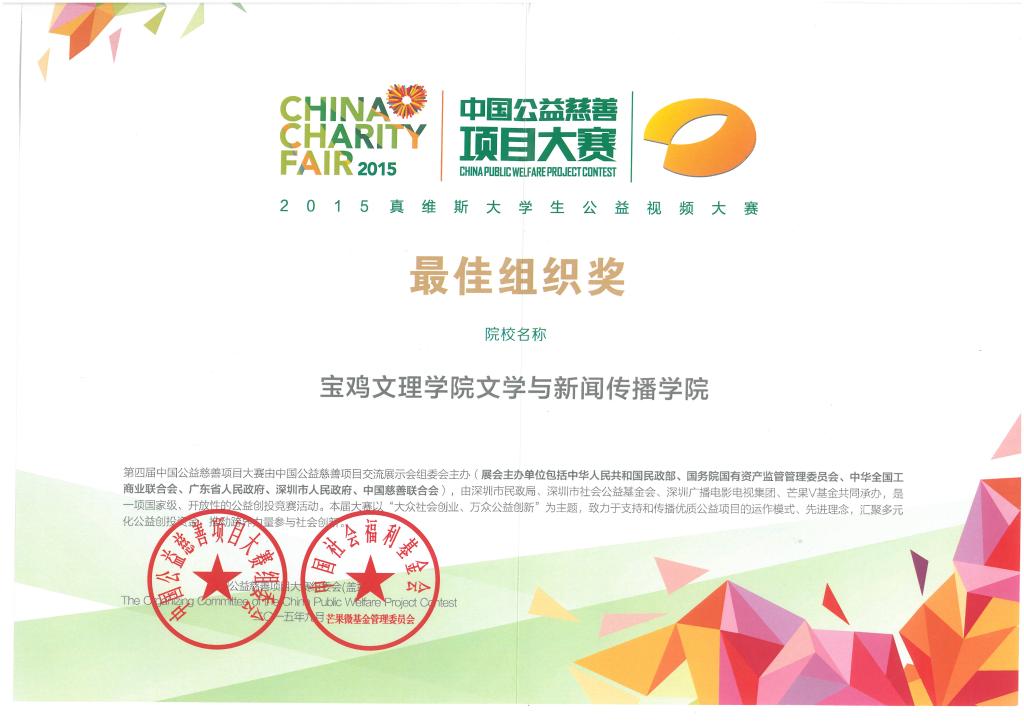 近日,文学与新闻传播学院微电影作品《归》获“2015真维斯大学生公益视频大赛”优秀作品奖,文传院获最佳组织奖。宝鸡电视台“图说宝鸡”栏目于10月6日、7日对微电影《归》进行了相关报道。