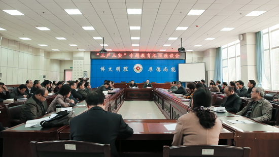 10月29日下午,我校在新校区甘棠厅召开“三严三实”专题教育汇报座谈会,校党委书记白黎出席座谈会并作了重要讲话,校党委副书记李全武主持座谈会。