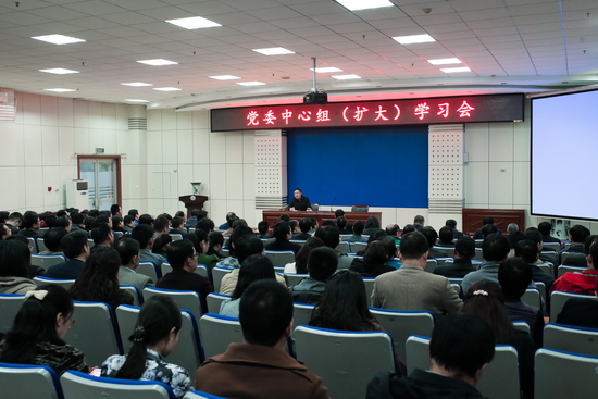 11月5日下午,校党委中心组(扩大)学习会在新校区木铎厅举行。全校副科级及以上干部参加了学习会。学习会由校党委书记白黎主持。