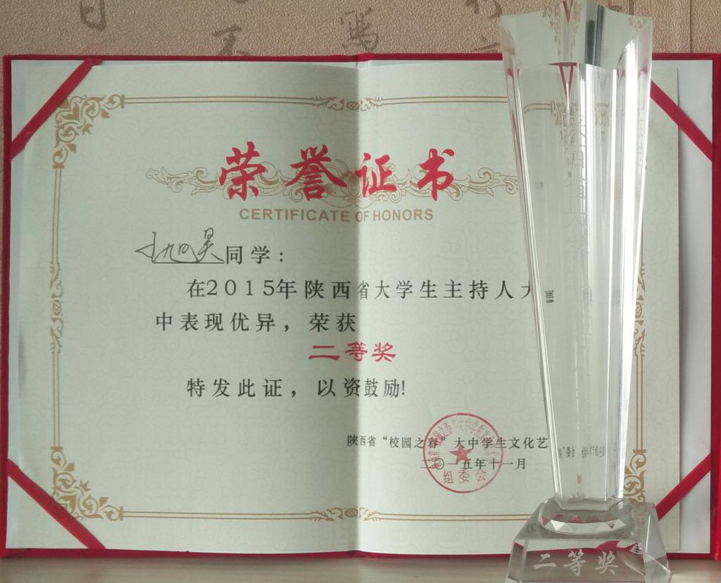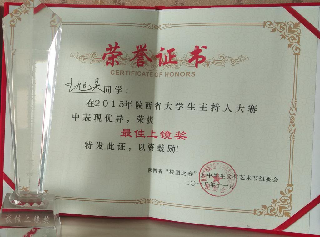 在日前举行的陕西省大学生主持人大赛上,我校文学与新闻传播学院2013级播音与主持艺术1班王旭昊同学荣获大赛二等奖和最佳上镜奖,并受邀担任陕西省“校园之春”大学生文化艺术节闭幕式主持人。