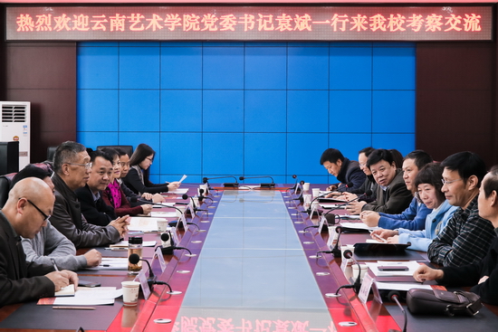 12月4日下午,云南艺术学院党委书记袁斌、副书记王江红、纪委书记刘泉一行8人来我校考察访问。校党委书记白黎、校长司晓宏、党委副书记米晓东会见了袁斌一行。学校在新校区图书馆801会议室召开座谈会,座谈会由米晓东主持。