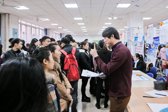 12月12日,我校2016届毕业生就业洽谈会在新校区隆重举行。本次洽谈会是在宏观经济增长放缓,结构性矛盾突出,有效用人需求呈下降趋势,高校毕业生就业形势依然严峻的情况下举办的,旨在进一步加强学校与用人单位的联系,搭建用人单位与毕业生进行双向选择的平台,促进2016届毕业生充分就业。